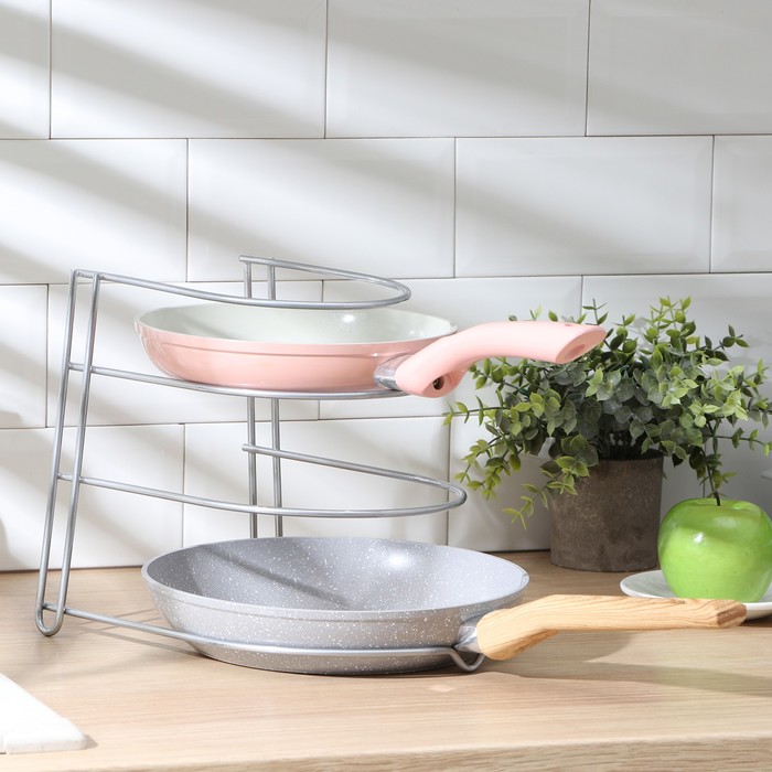 Подставка для хранения сковородок, 4-х ярусная, 28×23×22 см, цвет хром — Характеристики