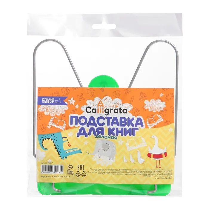 Подставка для книг Calligrata "ПРЕСТИЖ", с пластмассовым упором, европодвес, зелёная — Характеристики
