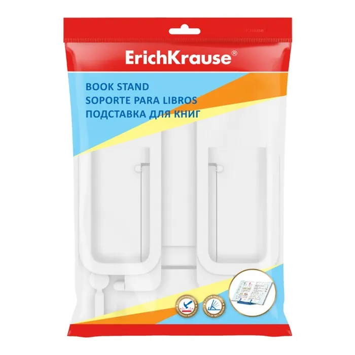 Пластиковая складная подставка с фиксатором для книг. Позволяет расположить книгу под удобным углом наклона (7 углов), тем самым положительно влияя на осанку и зрение ребенка. Держатель, расположенный в нижней части, надежно фиксирует страницы. Ширина подставки - 235 мм, высота спинки - 190 мм.