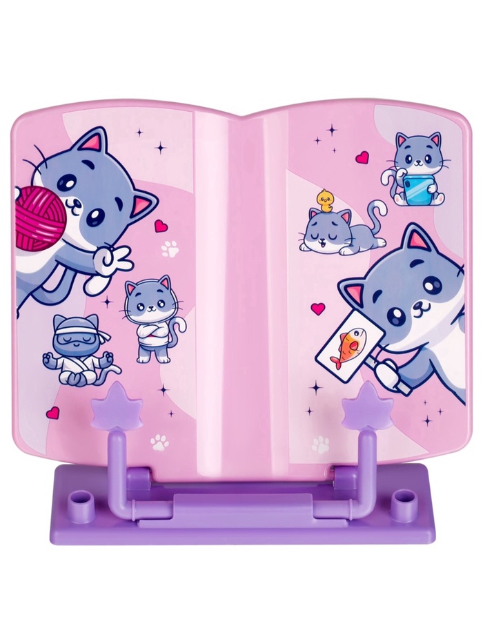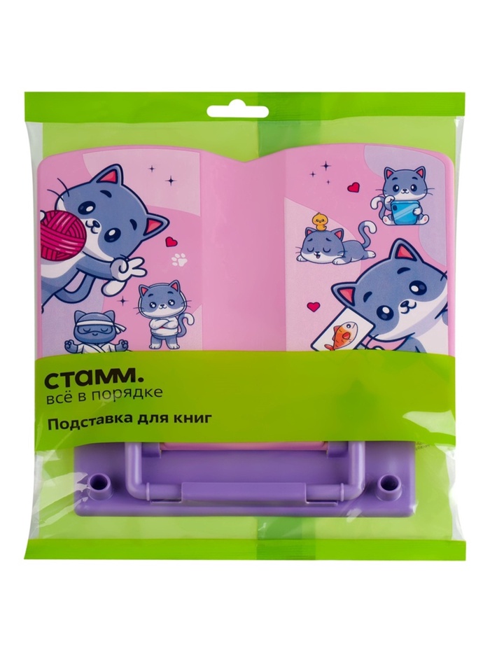 Подставка для книг «СТАММ» серии «Котики» – школьный аксессуар, повышающий комфорт при чтении. Изделие размером 200 x 200 x 25 мм подходит для больших и малых форматов книг. Подставка изготовлена из качественного пластика. Благодаря наличию фиксатора подставка не складывается под тяжестью книги. Изделие имеет регулируемый угол наклона: от 110 до 135 градусов. Складная конструкция удобна при транспортировке и хранении. Использование подставки поможет сформировать правильную осанку. Цвет изделия – розовый/фиолетовый. Индивидуальная упаковка – флоупак.