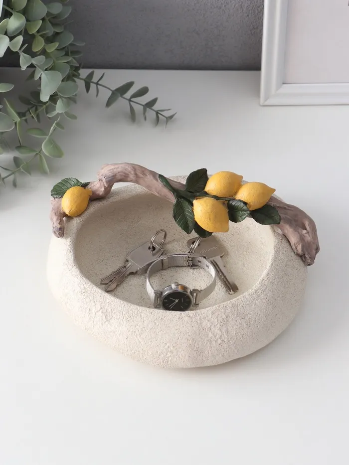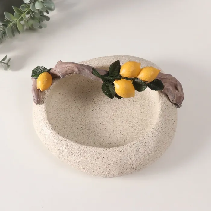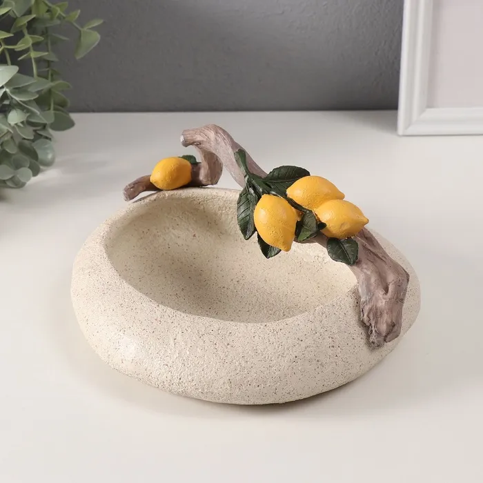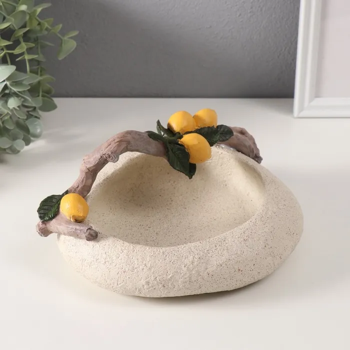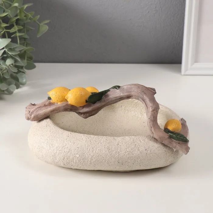 Подставка для колец, мелочей «Ветка с лимонами над чашей», полистоун, подсвечник, 18×22×10.5 см — Характеристики