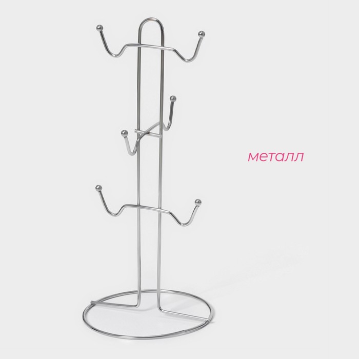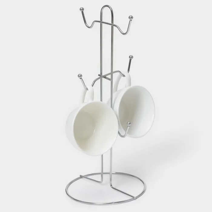 Подставка для кружек на 6 предметов Доляна, 13.5×13.5×30 см, серая — Характеристики