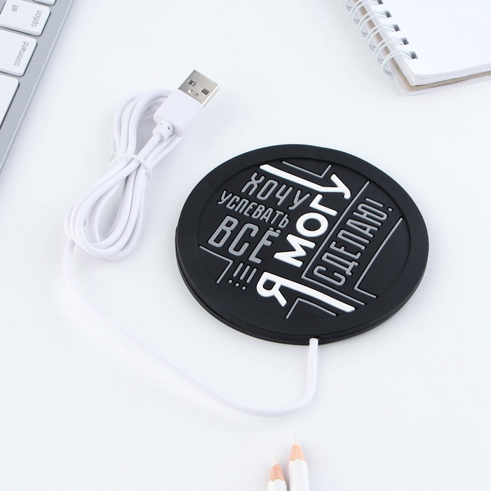 Подставка нагревается до 70 градусов. Работает с помощью USB подключения. Гарантия 6 месяцев.