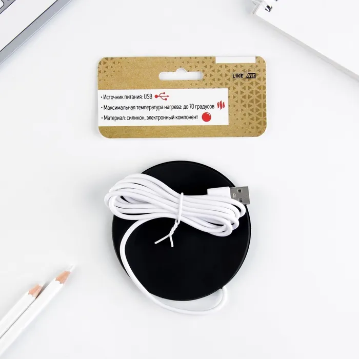 Подставка нагревается до 70 градусов. Работает с помощью USB подключения. Гарантия 6 месяцев.