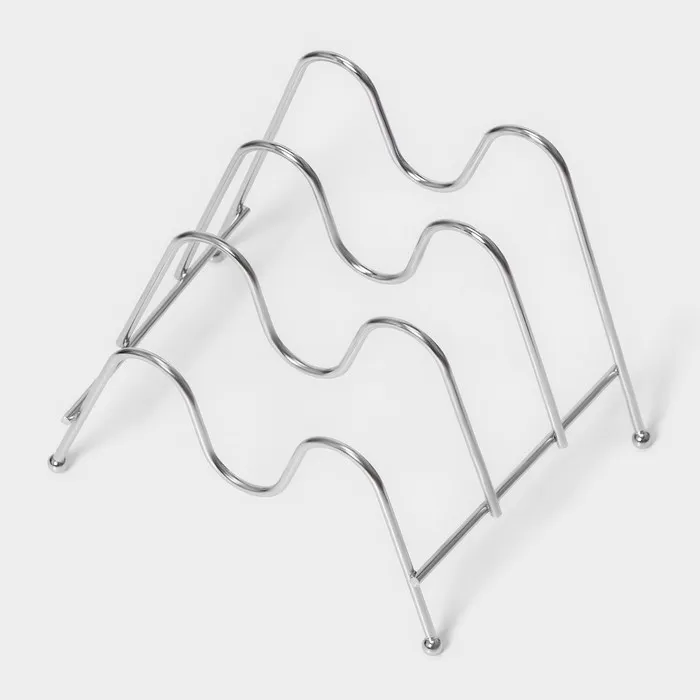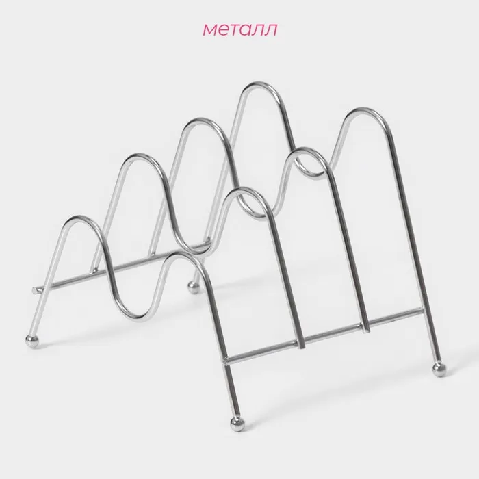 Благодаря продуманному дизайну, подставка позволяет компактно разместить до четырёх крышек различных размеров. Она изготовлена из высококачественного металла, что гарантирует прочность и долговечность. Хромированный цвет подставки придаёт ей стильный и современный вид, который прекрасно впишется в любой кухонный интерьер.