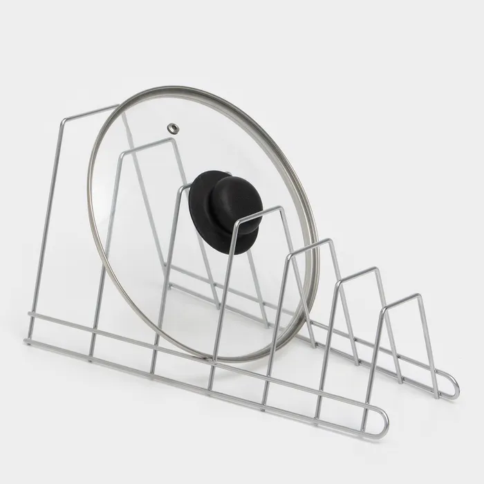 Удобная подставка предназначена для экономии места на кухне, а именно компактного хранения крышек в одном месте.