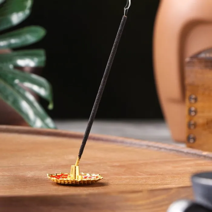 Поместите благовоние в курильницу и подожгите так, чтобы оно начало тлеть. Дым должен струиться и испускать аромат.