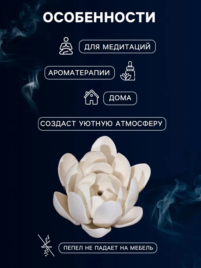 Курильница подходит для ароматических смесей, смол и благовоний, в том числе Пало Санто и Сян Дао. Изделие можно использовать для релаксации и чайной церемонии.