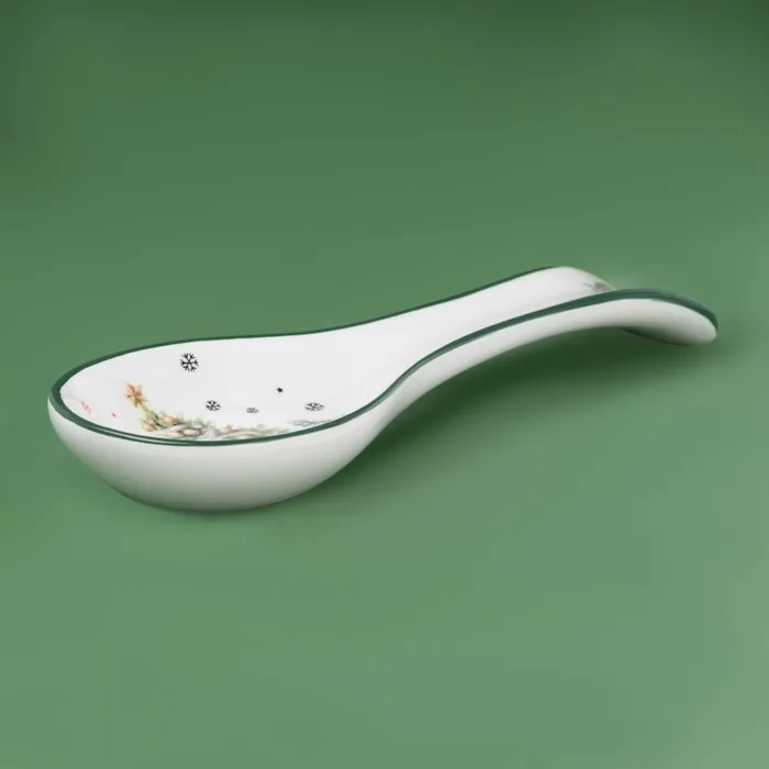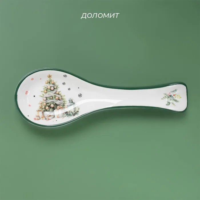 Новогодняя подставка для ложки «Приближение чуда» — маленькая, но значимая деталь праздничного стола. Она не просто ловит капли со столового прибора — она завершает образ. Белая доломитовая основа с тонким праздничным узором не затеряется среди блюд, а добавит сервировке законченность. Длина 22,3 см — достаточно, чтобы разместить деревянную или металлическую ложку, не боясь, что она соскользнёт.
