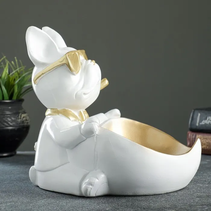 Подставка для мелочей "Бульдог сидит" белая, 20х18х21см — Характеристики