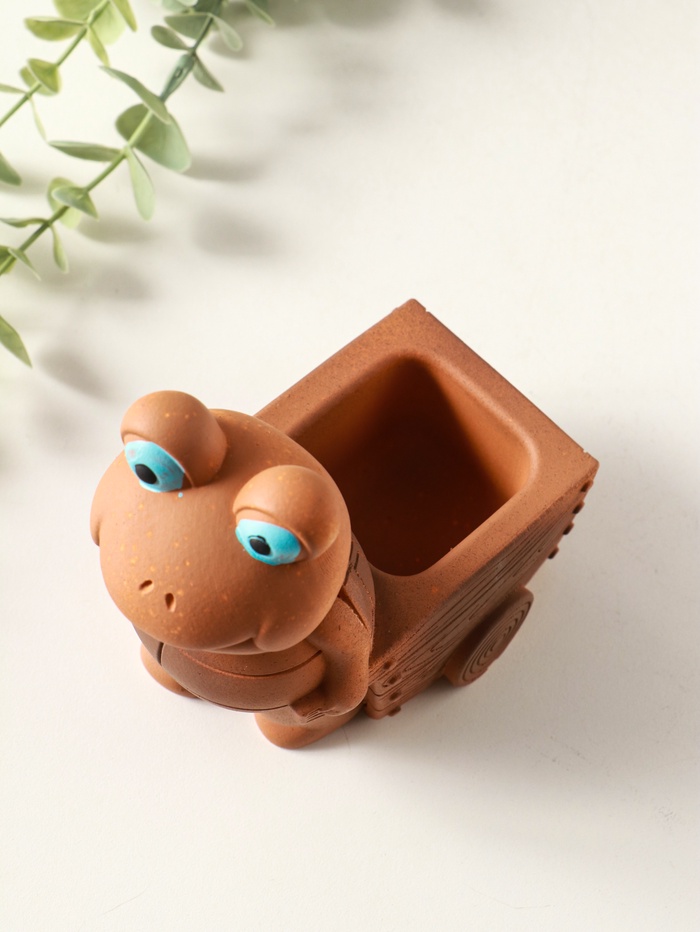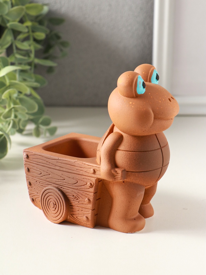Эта черепашка с тележкой — не просто фигурка, а уютный хранитель для тех мелочей, что вечно теряются. Поставьте её на полку в прихожей для ключей, на рабочий стол для скрепок или в детскую для маленьких сокровищ.