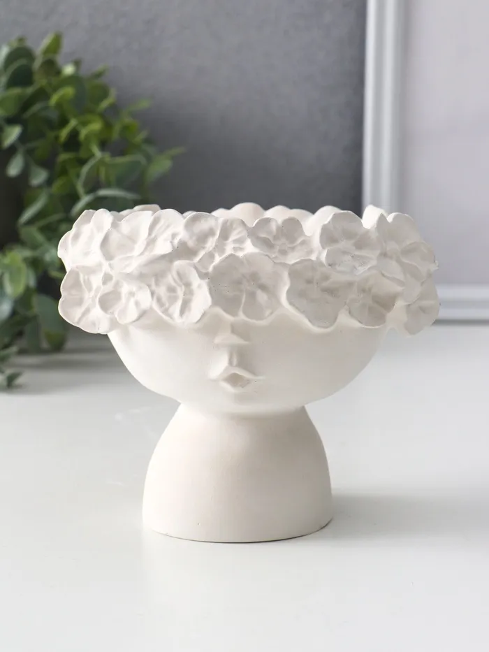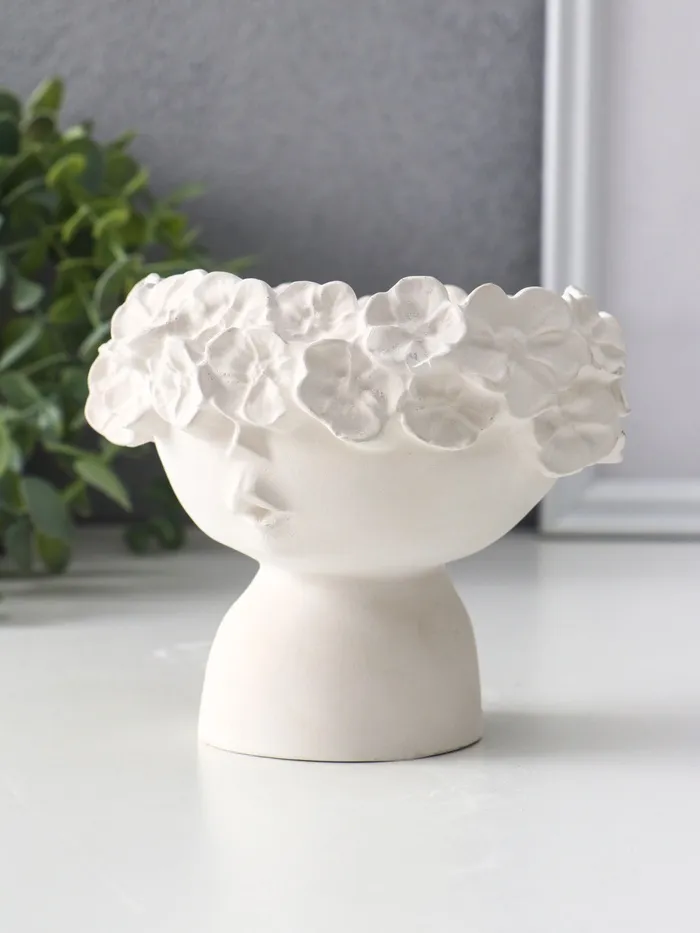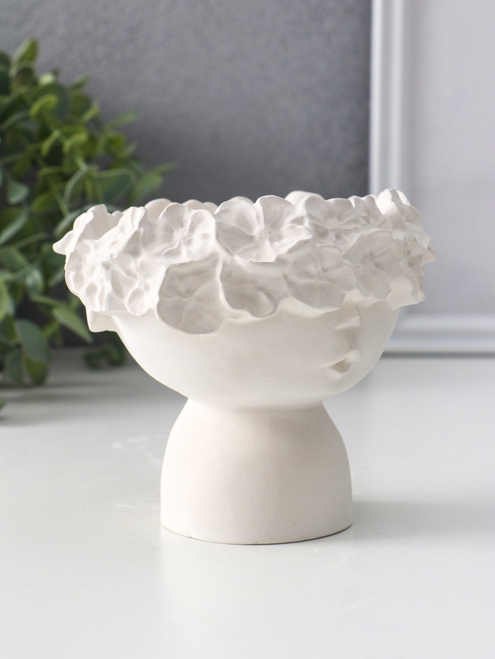 Эта изящная подставка в форме девочки в венке выполнена из гипса в белом цвете, что придаёт ей лёгкость и естественность. Высотой 12,5 см, она станет не только функциональным аксессуаром для хранения мелочей, но и стильным украшением интерьера, подчёркивая утончённый вкус хозяина.