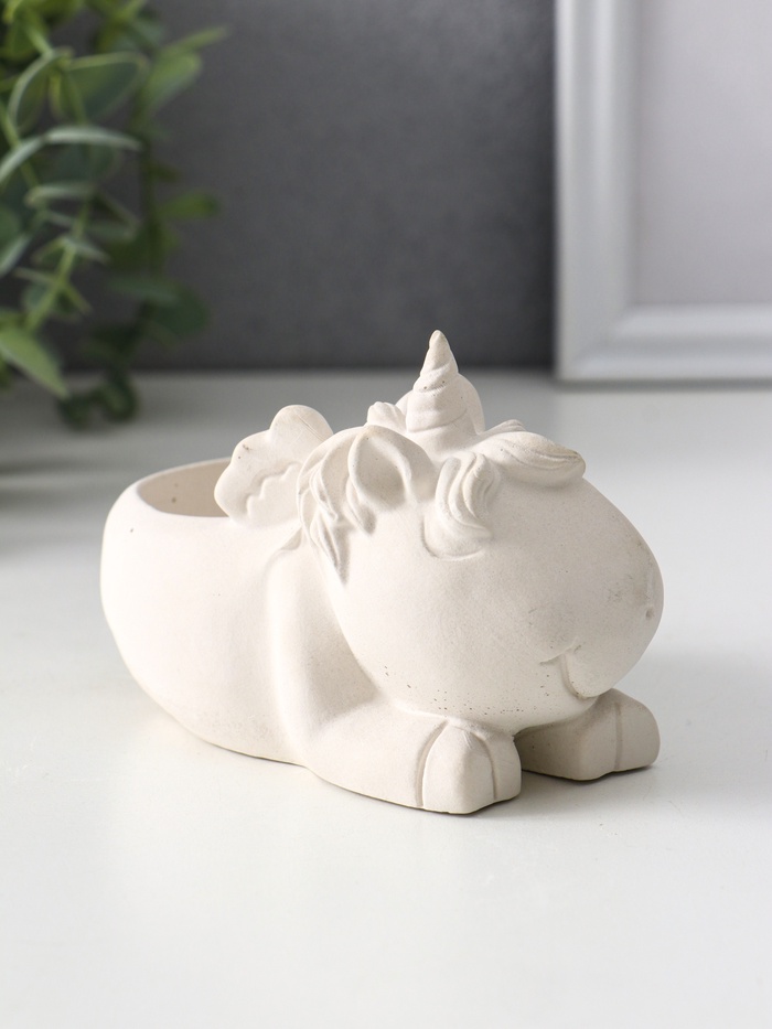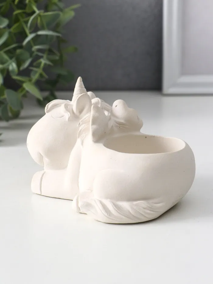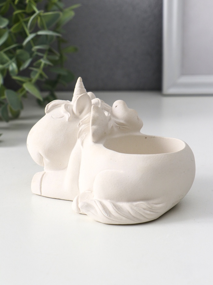 Изделие выполнено из натурального гипса, что гарантирует экологичность и долговечность, кроме того вы сможете украсить подставку на своё усмотрение. Белоснежный цвет, делает его универсальным элементом декора, который гармонично впишется как в детскую комнату, так и в уютную гостиную или рабочий кабинет. Размеры 8×12×9 см обеспечивают компактность, не нарушая при этом визуальной выразительности.