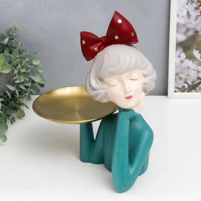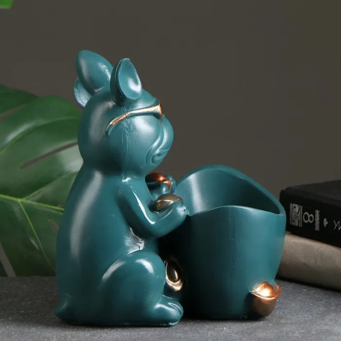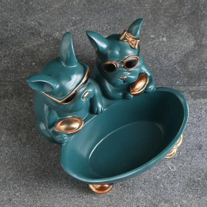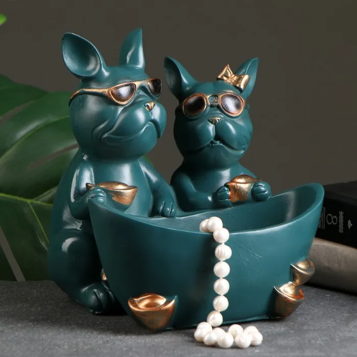 Подставка для мелочей «Фигурка. Два бульдога», полистоун, зелёная, 21×19×19 см — Характеристики