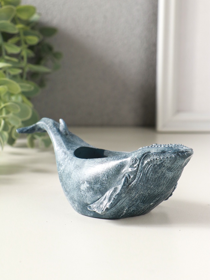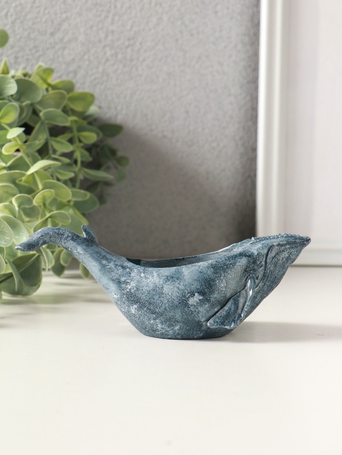 Подставка для мелочей «Кит», 6×14×5 см, гипс, серо-голубой