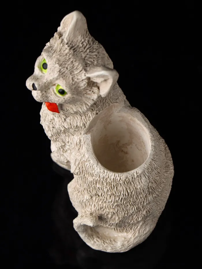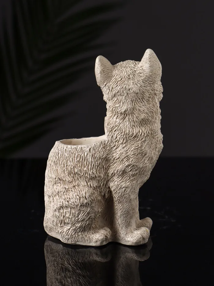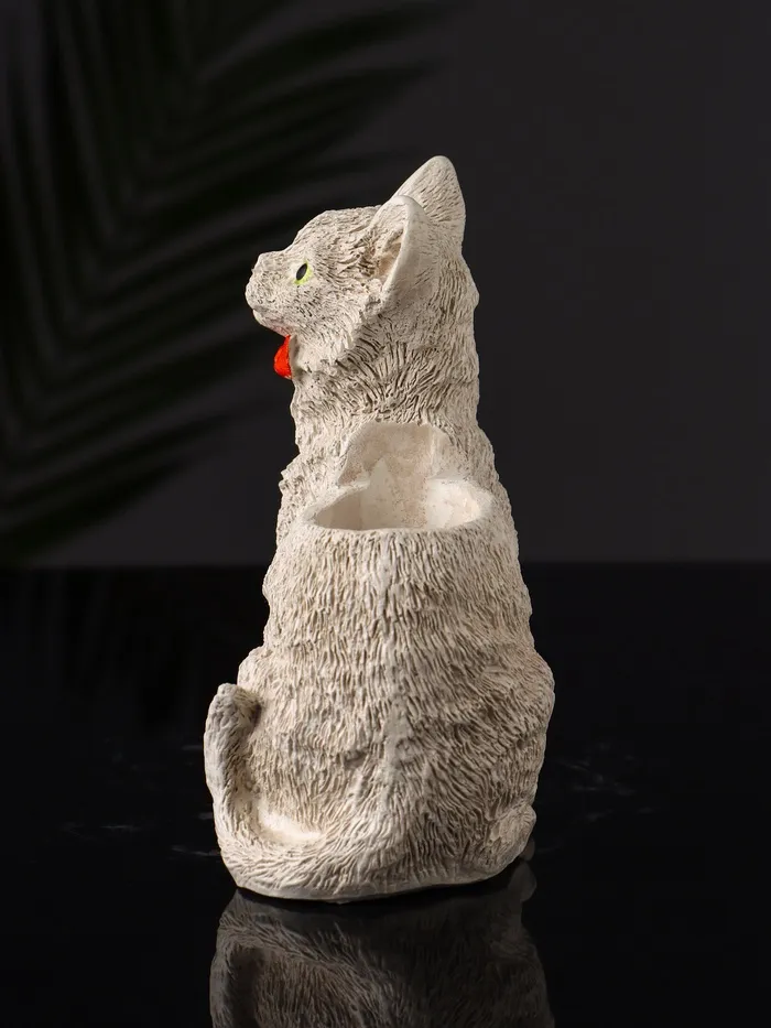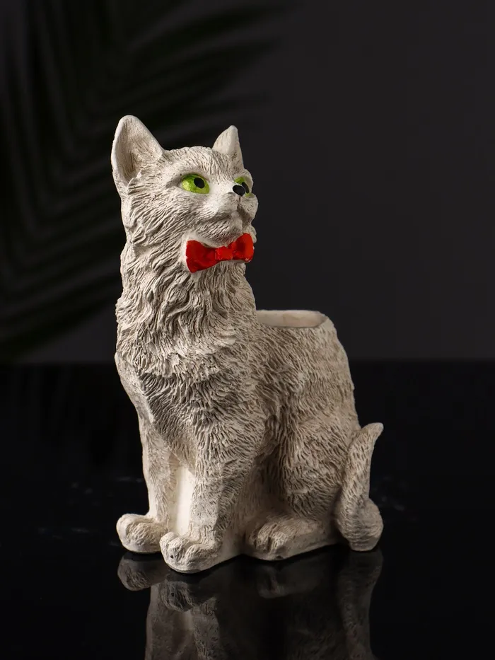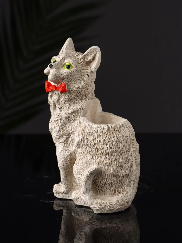 Каждая деталь фигурки, от игривого банта до выразительных черт мордочки, подчёркивает мастерство исполнения и внимание к мелочам. Гипсовая основа обеспечивает долговечность и устойчивость к внешним воздействиям, сохраняя первозданный вид даже при активном использовании. Подставка не только поможет организовать пространство, но и наполнит его атмосферой уюта и позитива.