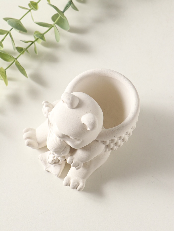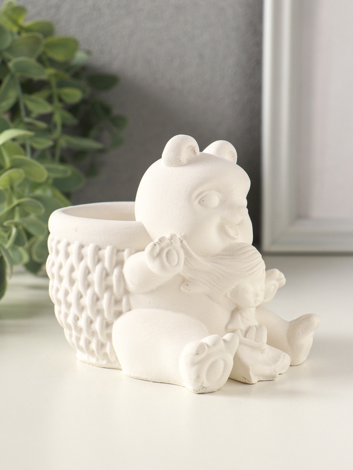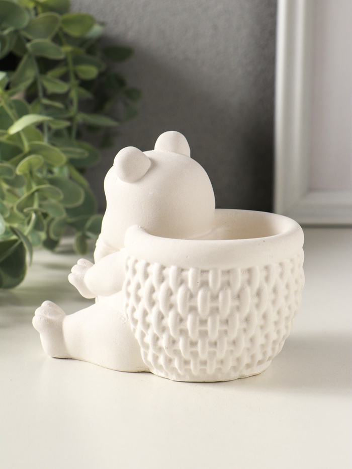 Этот милый гипсовый мишка с корзинкой станет вашим помощником в порядке. Он соберёт всё, что обычно теряется на столе или комоде: ключи, мелочь, украшения. Корзинка в его лапах — это аккуратная «берлога» для мелочей, которая превращает беспорядок в милый декоративный элемент.