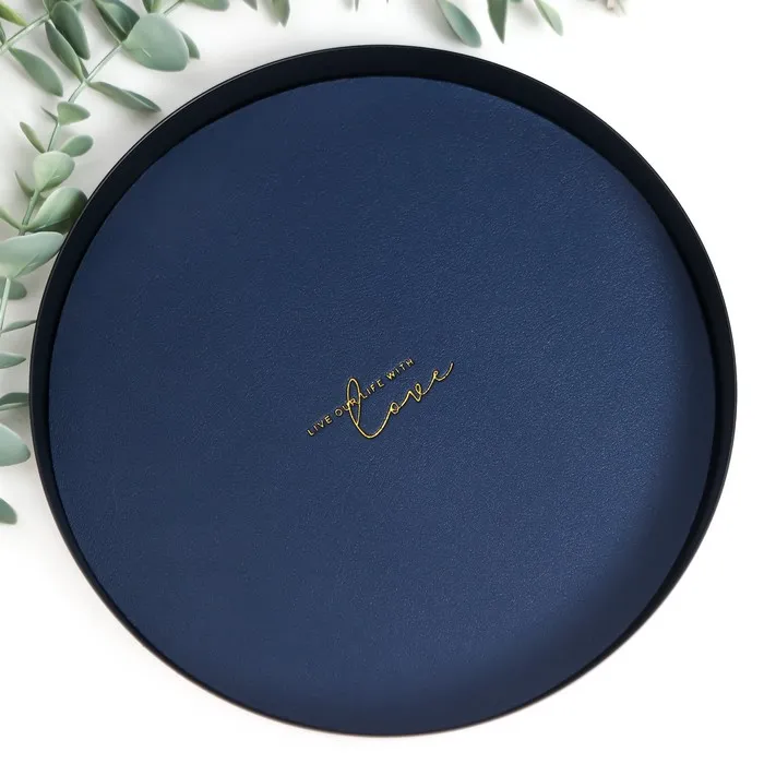 Подставка для мелочей металл, иск.кожа "Круг" чёрно-синяя 20х20х2,5 см