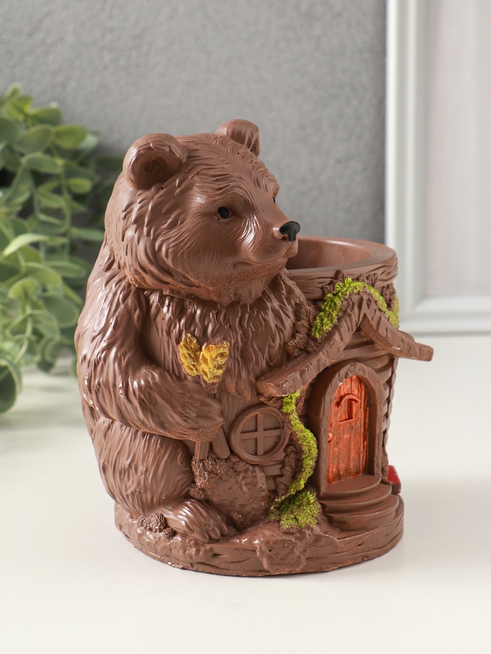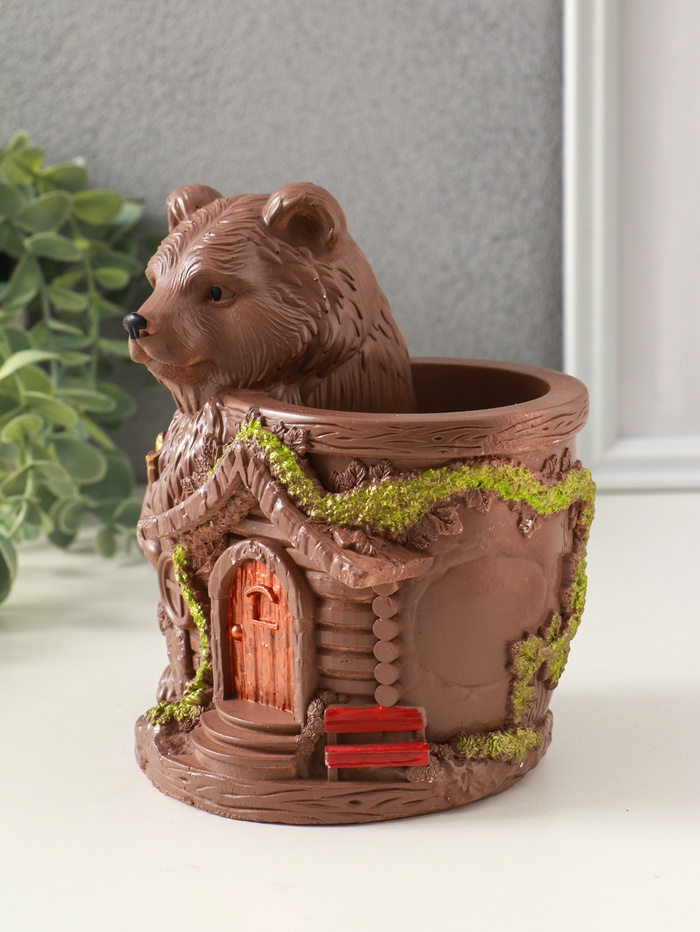 Эта гипсовая подставка в виде медведя станет уютным хранителем для мелочей, которые так часто теряются. Медведь-теремок встречает вас у входа в дом, предлагая сложить в него ключи, монеты или украшения. Натуральный коричневый цвет и окрас создают теплое ощущение, которое несёт в себе дух русской сказки.