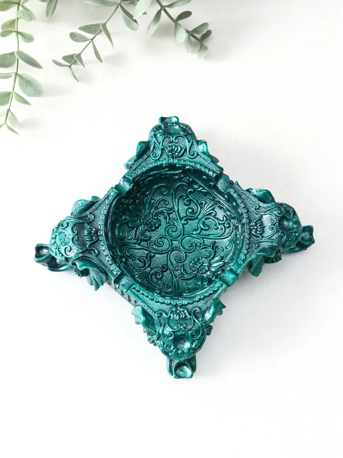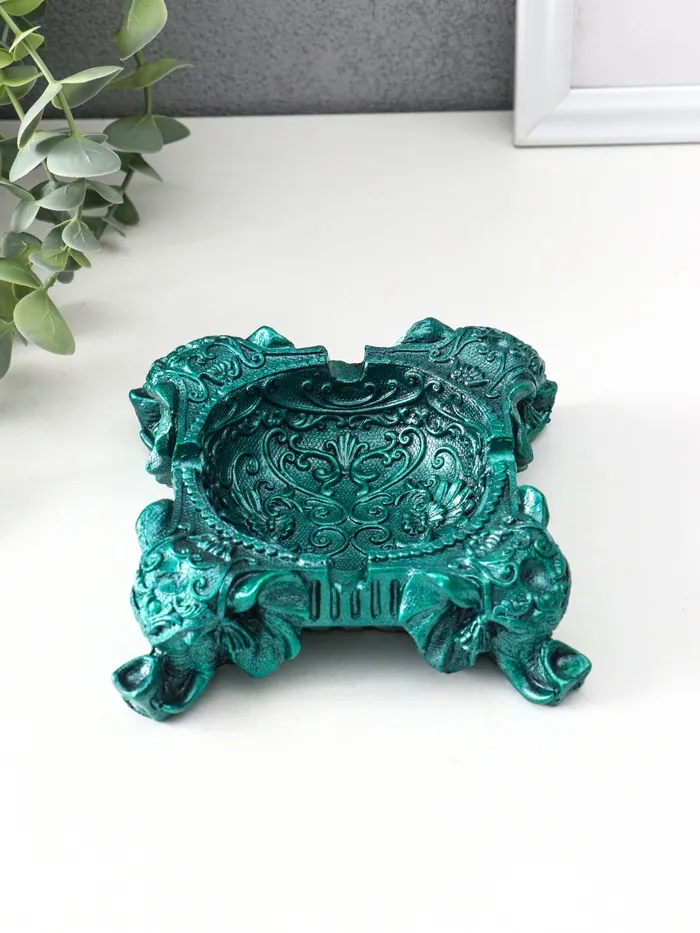 Исполненный из высококачественного гипса с покрытием «металлик» глубокого зеленого оттенка, этот предмет притягивает взгляд благородным мерцанием и тактильной теплотой. Искусная резьба подчеркивает мощь и грацию каждого животного, демонстрируя внимание к деталям. Компактные размеры (4.5×13×13 см) делают его функциональным украшением для любого уголка вашего дома — от прихожей до рабочего стола.