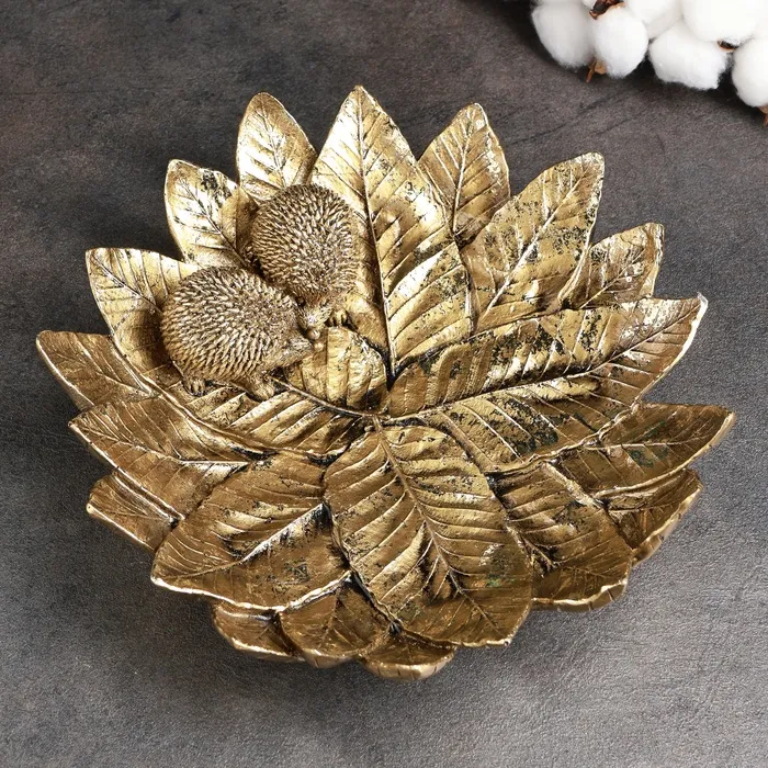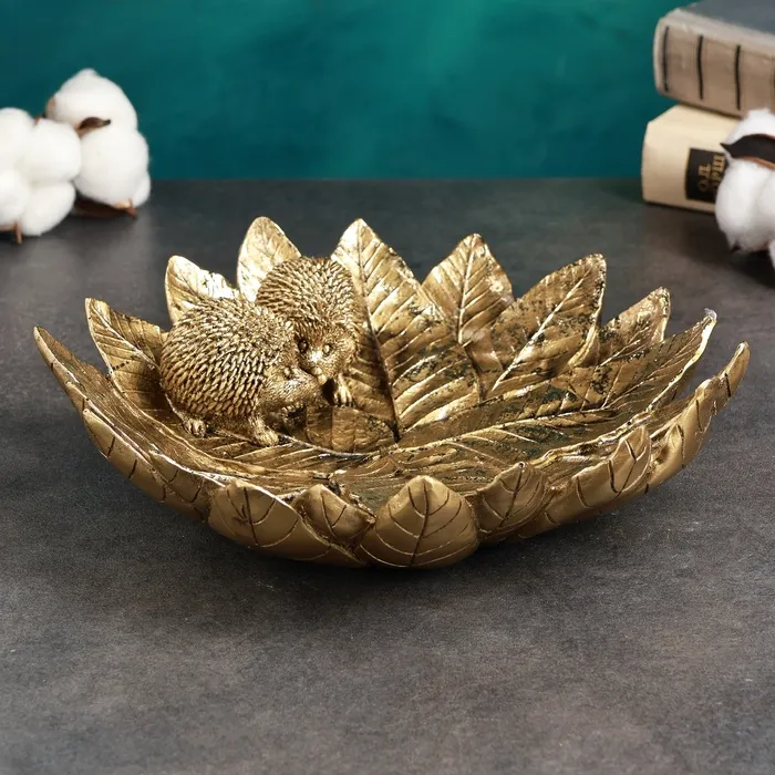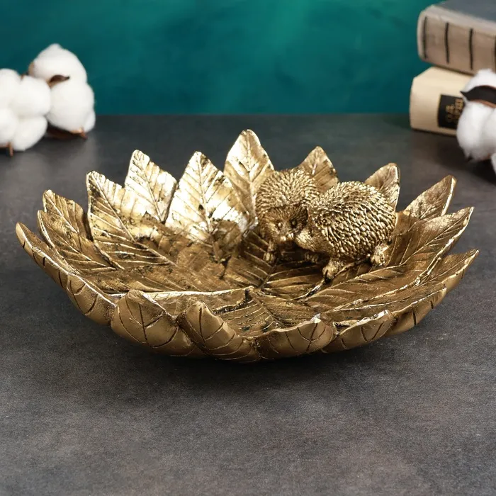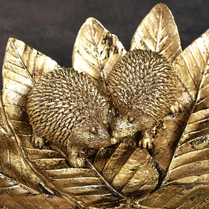 Подставка для мелочей «Пара ежей на тарелке из листьев», полистоун под золото, 24×24×6.5 см — Характеристики