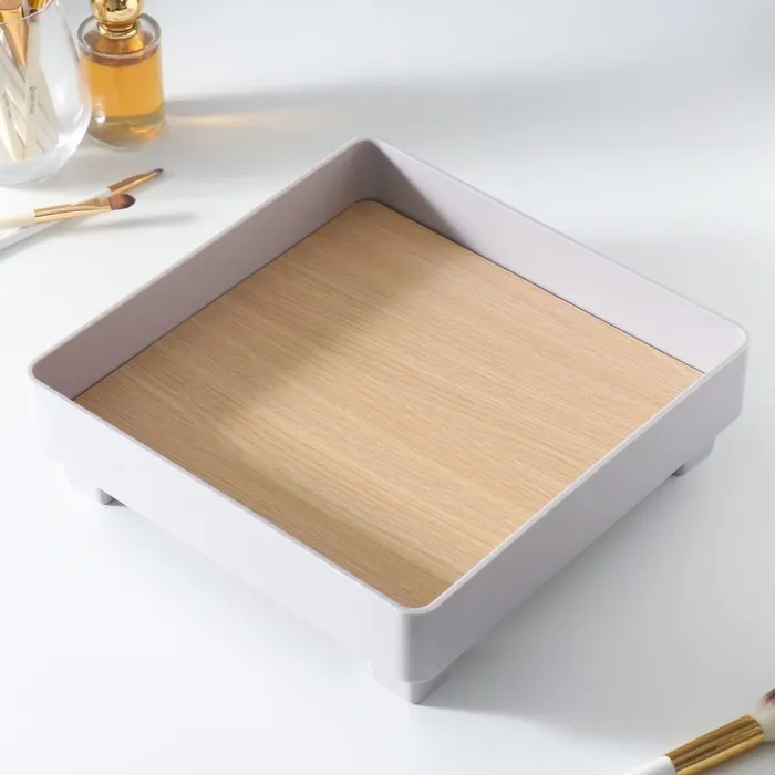 Подставка для мелочей пластик "Квадрат" серая 24,8х24,8х7,2 см