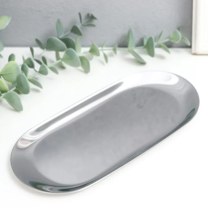 Подставка для мелочей нержавеющая сталь "Овал" серебристая 8,5х18 см
