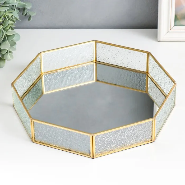 Подставка интерьерная стекло с зеркалом "Многогранник. Капли" 28х28х5,5 см