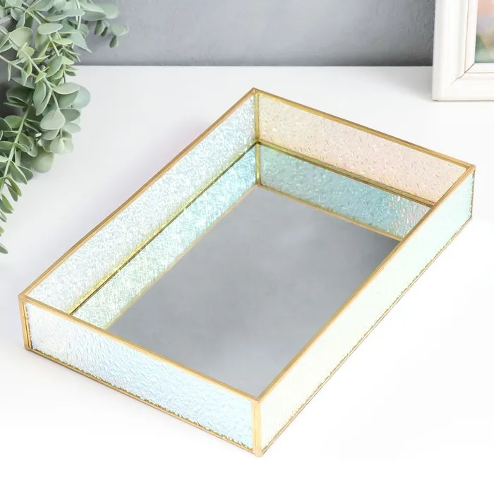 Подставка интерьерная стекло с зеркалом "Прямоугольник. Радужные капли" 30х20х5 см