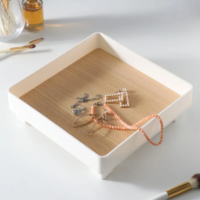 Подставка для мелочей пластик "Квадрат" белая 24,8х24,8х7,2 см