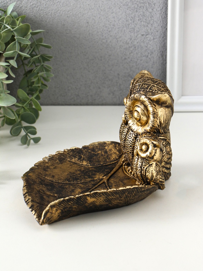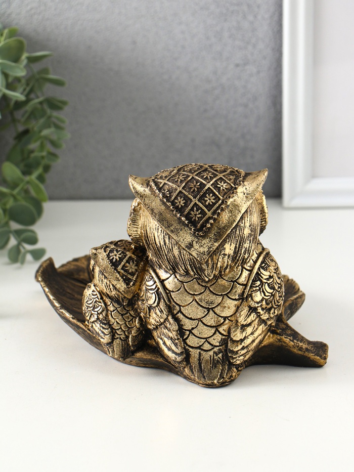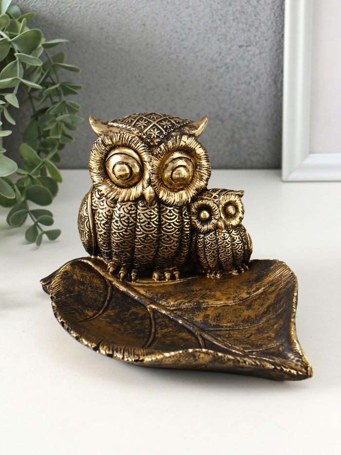 Подставка для мелочей «Совушки», полистоун, 15×22×12 см, под золото — Характеристики