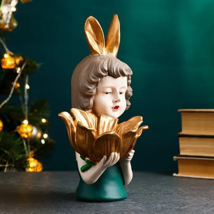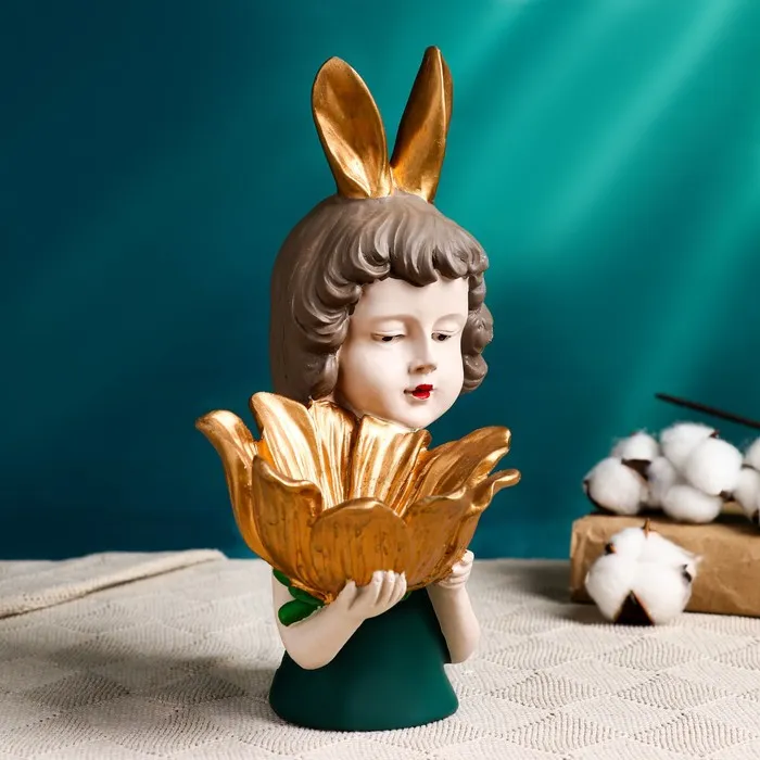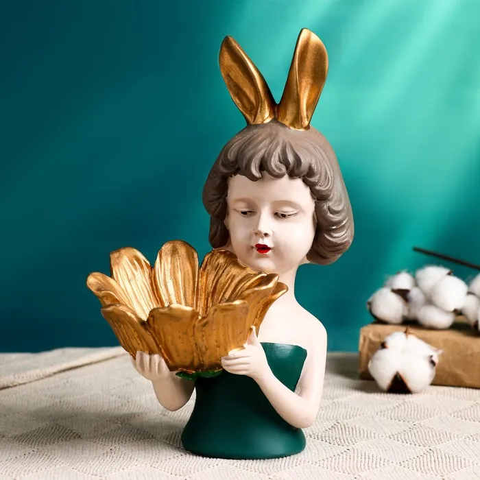 Позвольте себе улыбнуться, глядя на этот очаровательный аксессуар, который добавит нотку тепла и уюта в ваш интерьер. Изящная фигурка в виде девочки-зайки с ромашкой не просто радует глаз, но и помогает организовать пространство, бережно храня мелкие предметы.