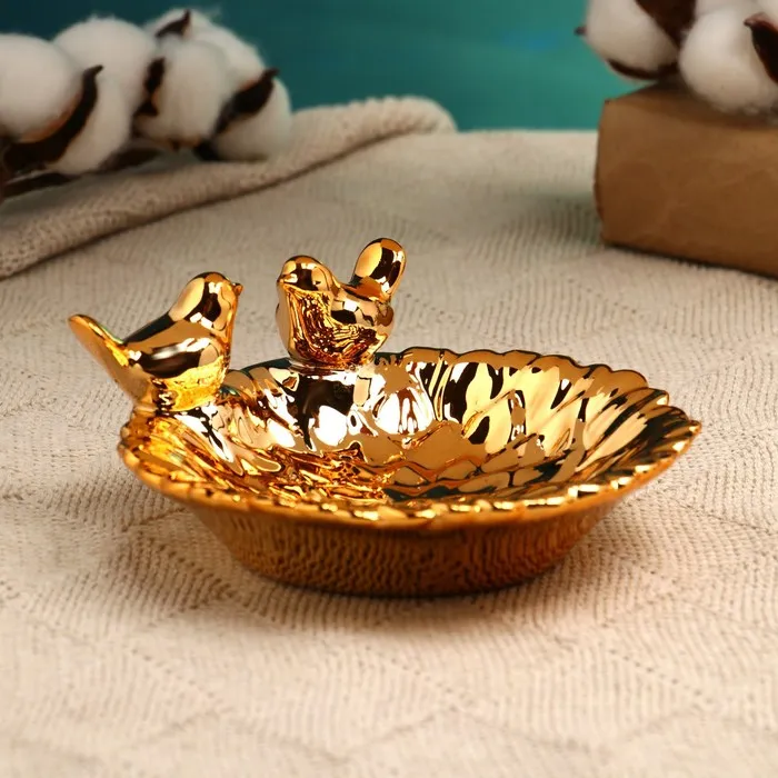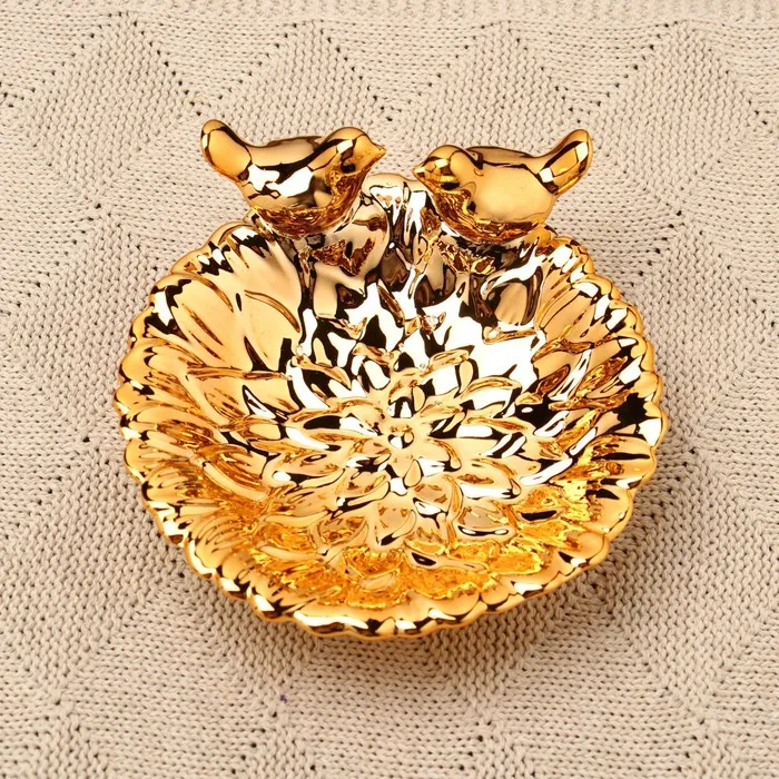 Подставка для мелочей TAKE IT EASY «Пташки» 13×13×5 см, керамика под золото — Характеристики