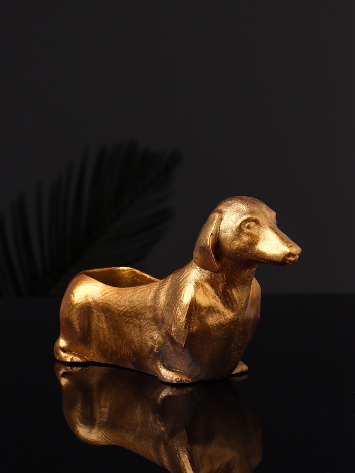 Подставка для мелочей «Такса» 16×10×6 см, полистоун под бронзу