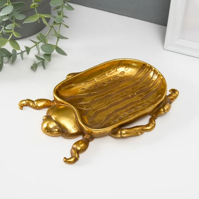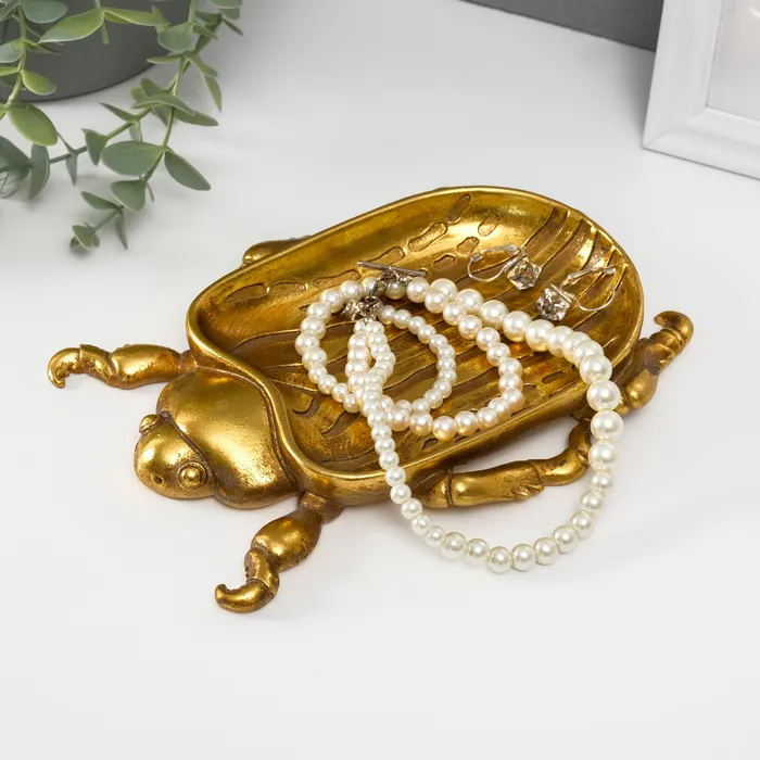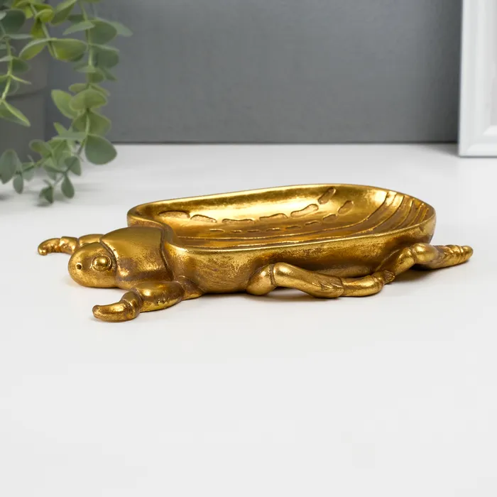 Подставка для мелочей «Жук скарабей», полистоун под золото, 19.5×14.5×2.5 см — Характеристики