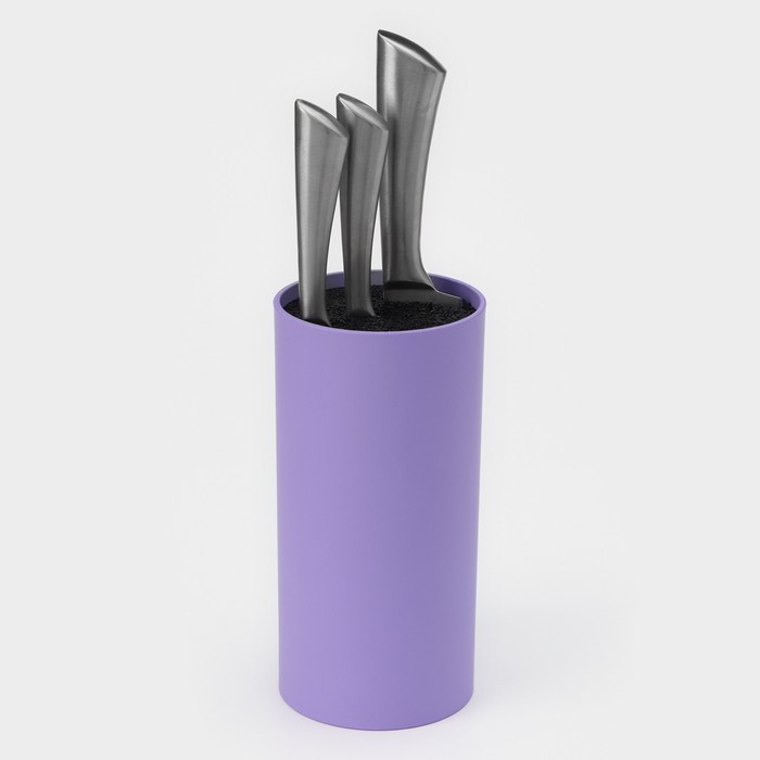 Подставка для ножей с наполнителем Доляна «Нео», 22×11 см, покрытие soft-touch, цвет фиолетовый — Характеристики