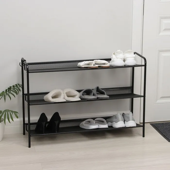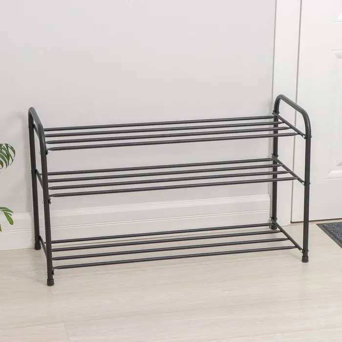 Подставка для обуви, 3 полки, 82,5×32×48,5 см, чёрная