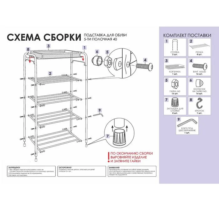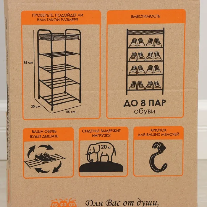 Подставка для обуви, 5 ярусов, 45×30×95 см, цвет чёрный — Характеристики