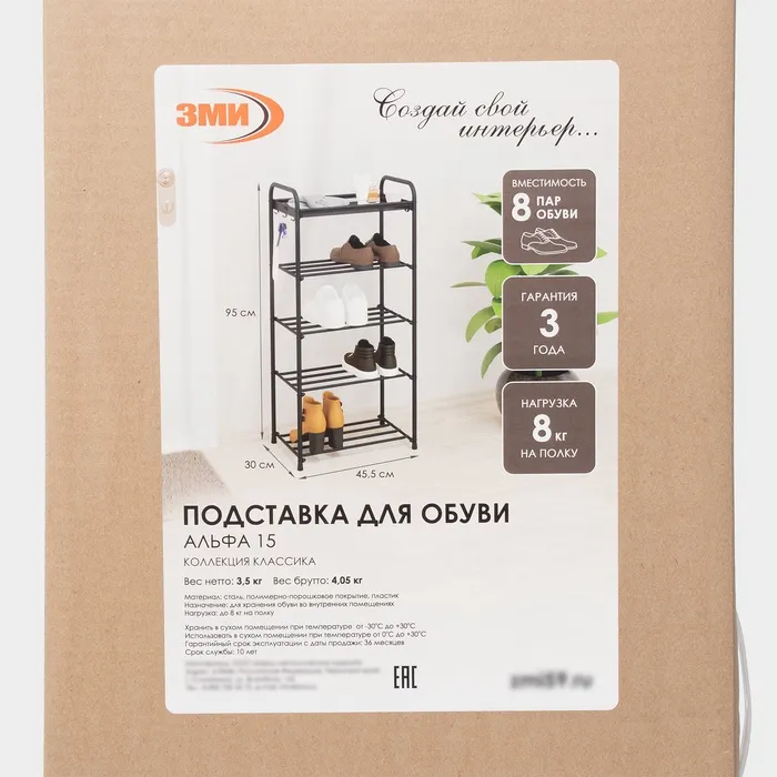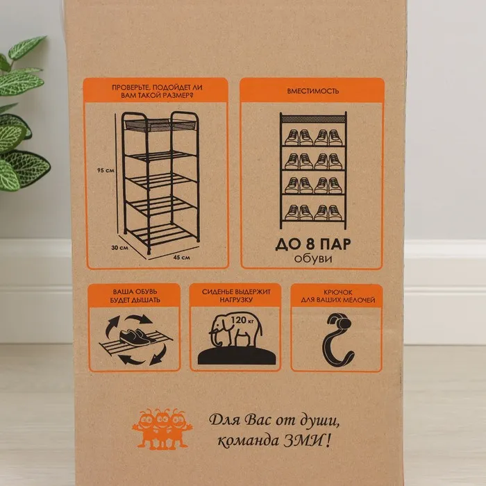 Подставка для обуви, 5 ярусов, 45×30×95 см, цвет МИКС — Характеристики