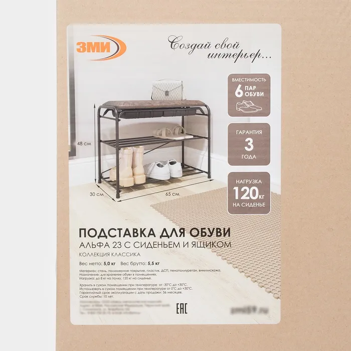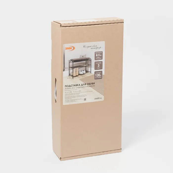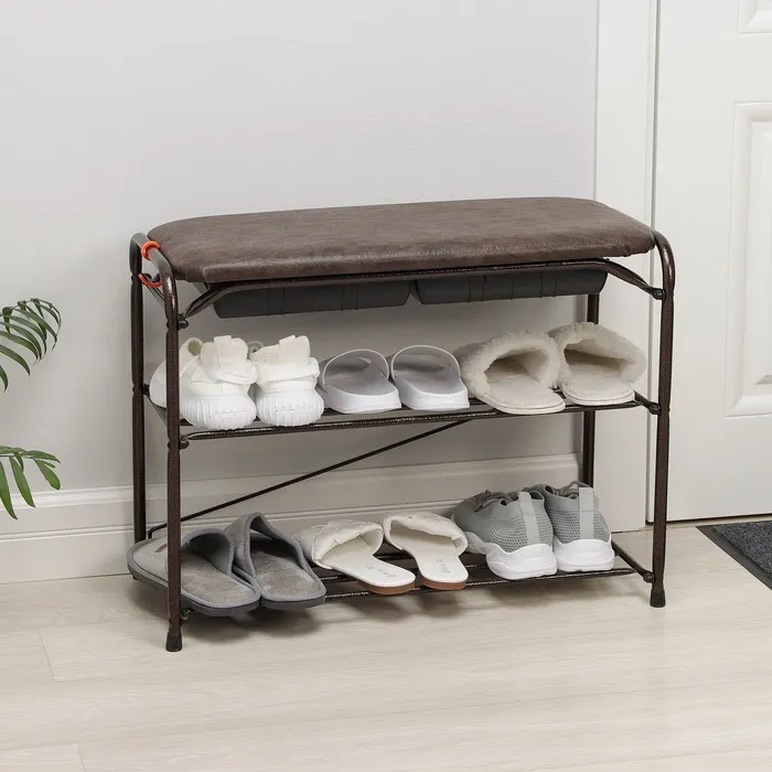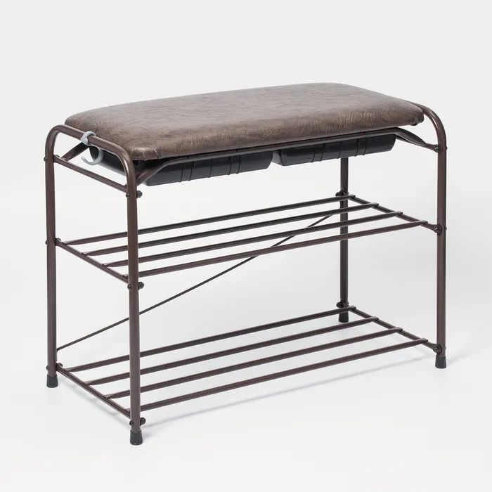 Подставка для обуви с сиденьем, 3 яруса, 60 см, коричневая — Характеристики
