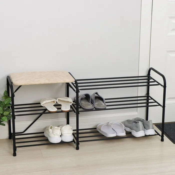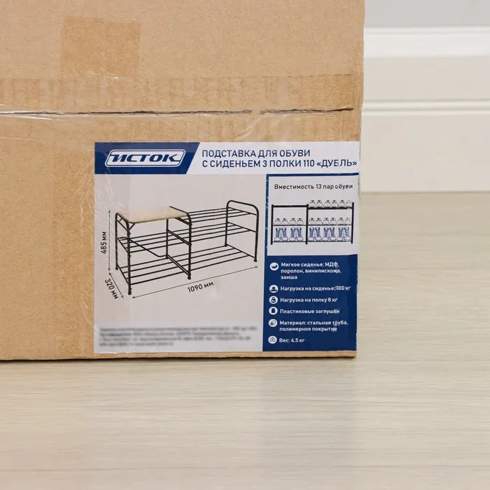Подставка для обуви с сиденьем «Дубль», 3 полки, замша, чёрная — Характеристики