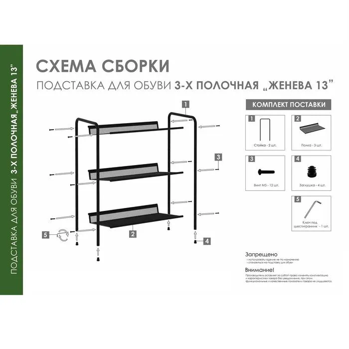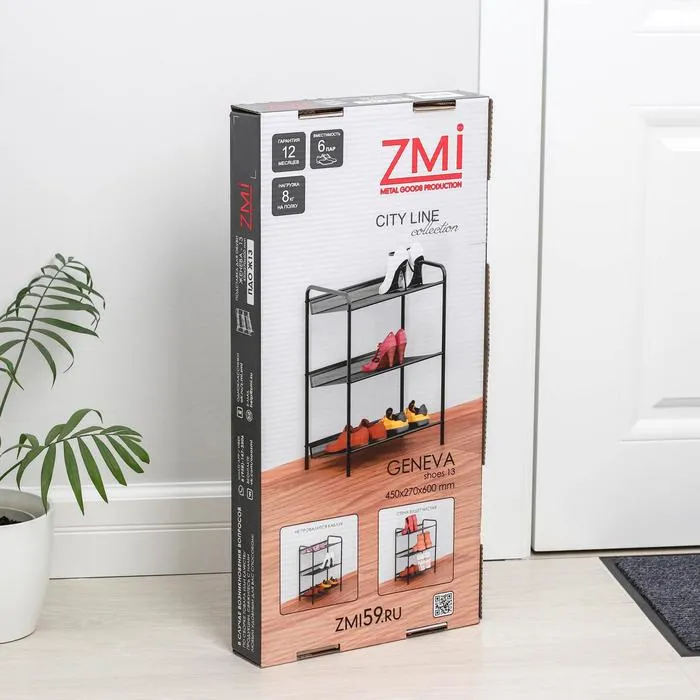 Подставка для обуви «Женева-13», 3 полки, 45×27×60 см, чёрная — Характеристики