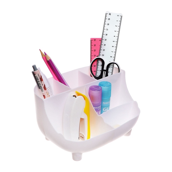 Органайзер с шестью секциями станет незаменимым помощником на вашем рабочем столе. Этот функциональный аксессуар поможет вам упорядочить пишущие принадлежности, избегая творческого беспорядка. Современный белый дизайн органайзера идеально дополнит любое рабочее пространство, поддерживая эстетику минимализма.