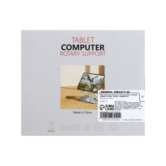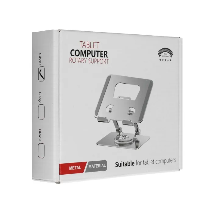 Подставка для планшета, регулируемая складная, поворот на 360°, металл, серебристая — Характеристики