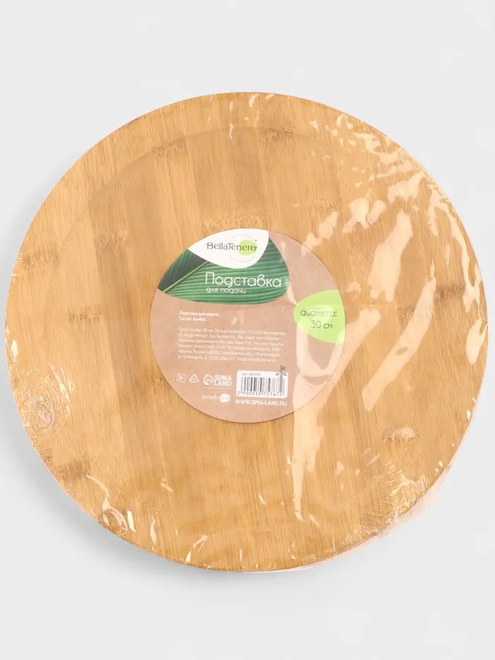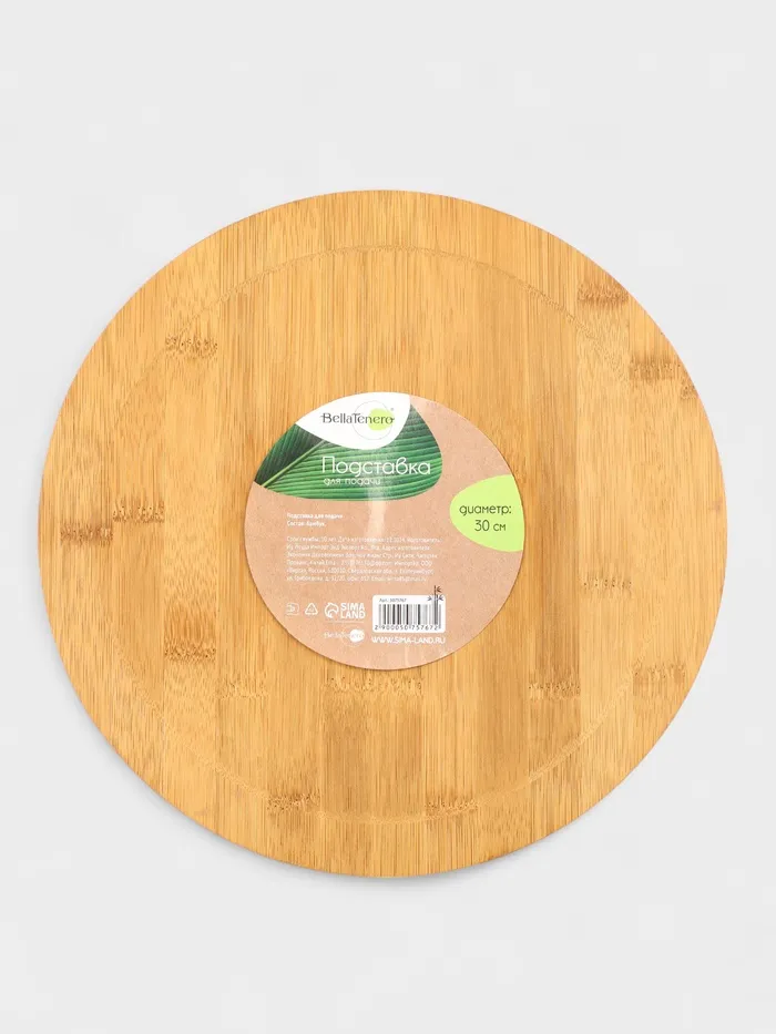 Подставка изготовлена из натурального бамбука и имеет стильный бежевый цвет, который гармонично впишется в любой интерьер. Она имеет удобный размер 30 cм, что делает ее подходящей для разных видов блюд. Подставка также имеет прочный и надежный каркас, который гарантирует ее длительный срок службы.
