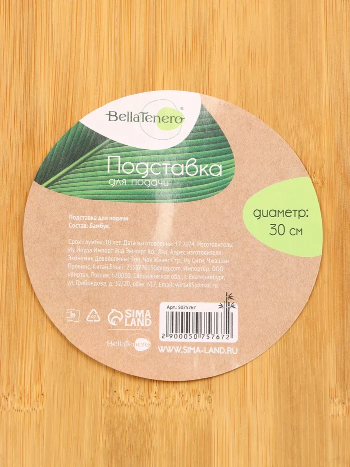 Подставка для подачи крутящаяся BellaTenero, d=30 см, бамбук — Характеристики