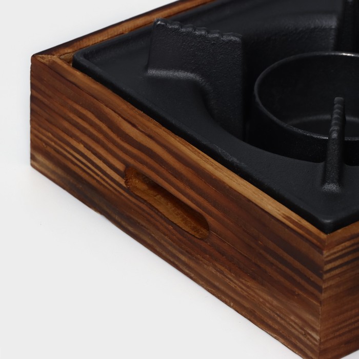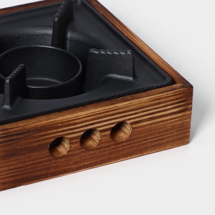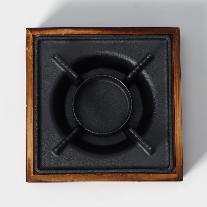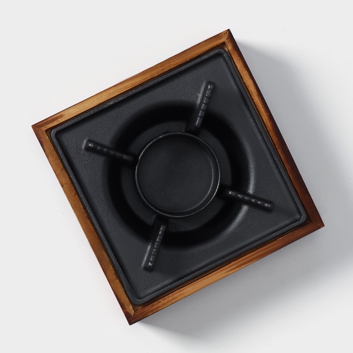 Подставка для подогрева блюд, 20×20×8 см, с деревянной подставкой — Характеристики