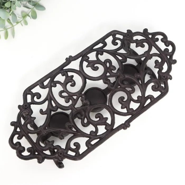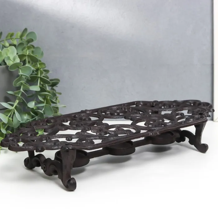 Подставка для подогрева на греющей свече «Растительный узор», подсвечник на 3 свечи, чугун, 6×35×16.5 см — Характеристики