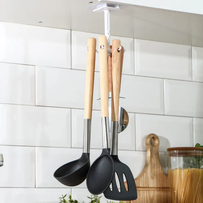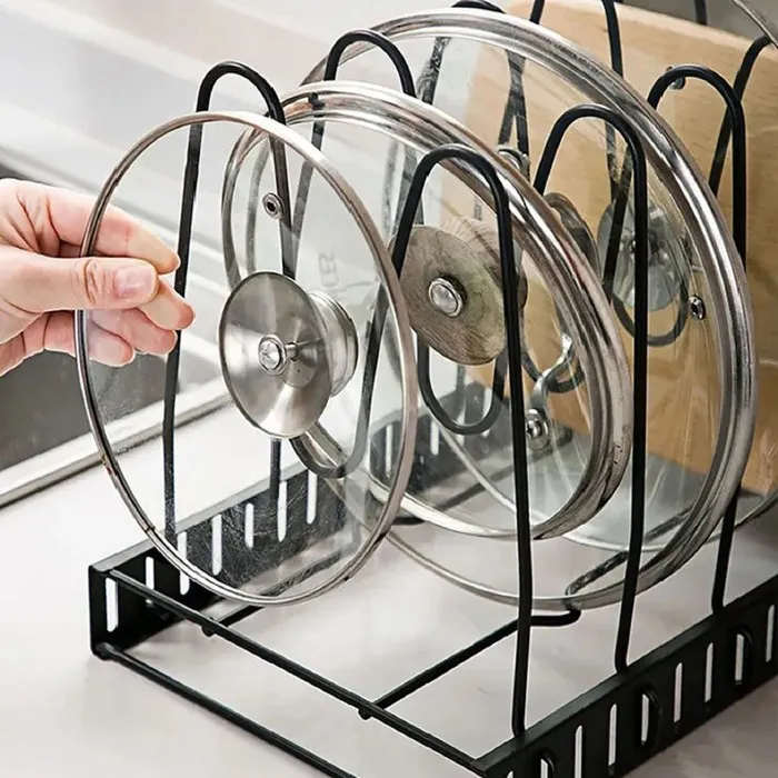 - Держатель можно использовать как для хранения, так и для сушки сковородок и крышек.