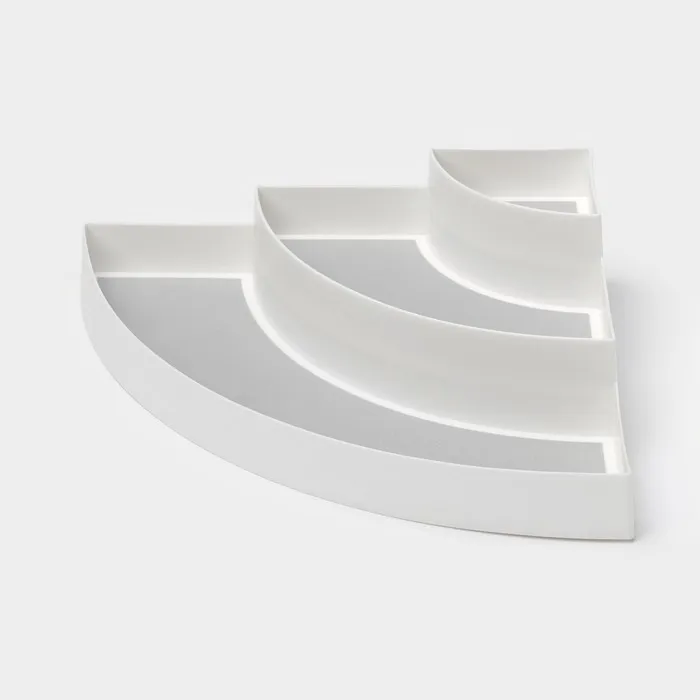 Подставка изготовлена из прочного пластика с накладками с антискользящим покрытием, конструкция имеет вид лестницы в 3 яруса.